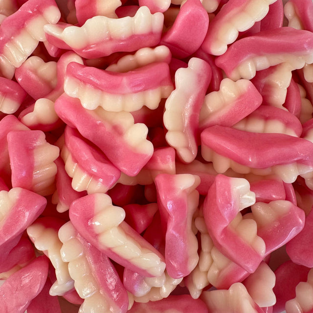 Grandma’s False Teeth are soft, fruity Swedish gummies shaped like playful pink-and-white dentures. Chewy with a light tang, they’re a fun treat for all ages — perfect for sharing, parties, or adding a quirky touch to any candy jar. These nostalgic gummies are guaranteed to bring a smile with every bite.